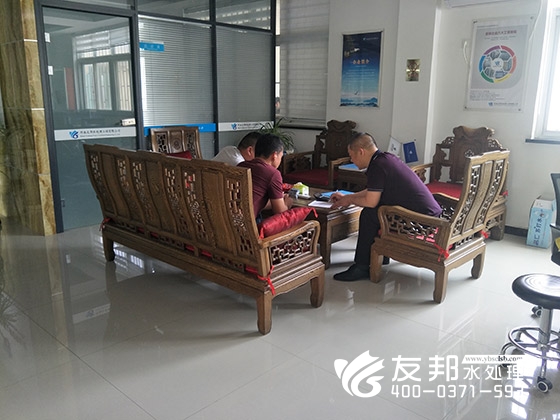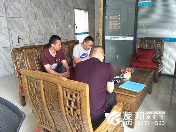 2018年5月10日湖北某化工公司與鄭州友邦水處理設備工程有限公司在友邦辦公室當場簽下10噸的純凈水設備。