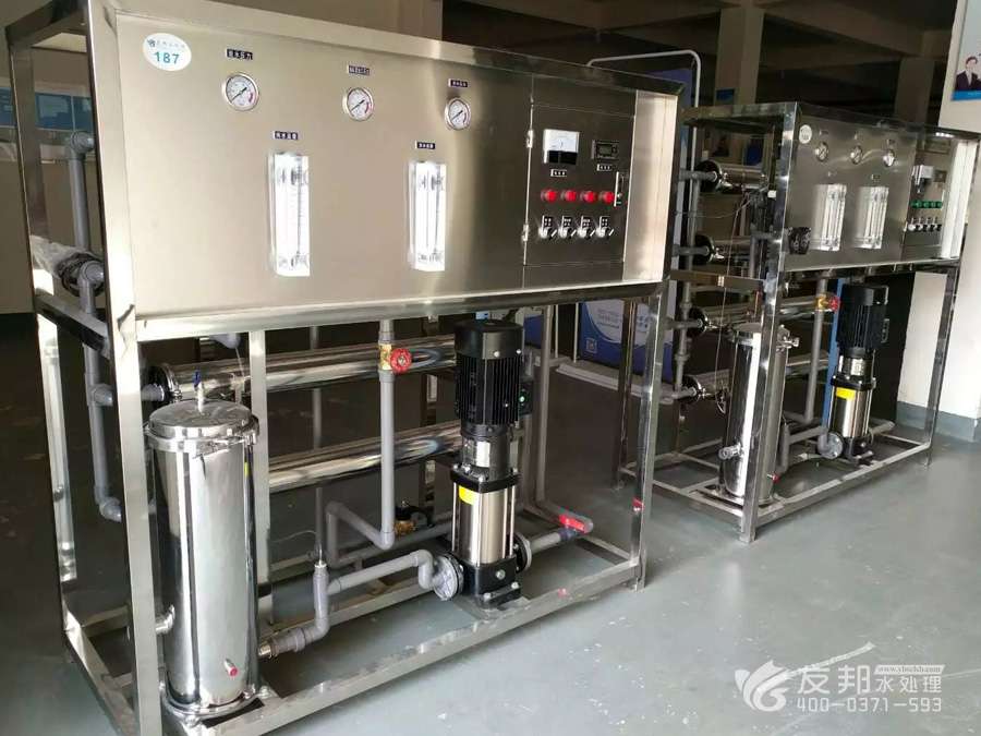 3、原水→原水加壓泵→多介質(zhì)過濾器→活性炭過濾器→阻垢裝置→精密過濾器→一級(jí)反滲透→PH調(diào)節(jié)→中間水箱→二級(jí)反滲透→中間水箱→中間水泵→EDI系統(tǒng)→純化水箱→純水泵→紫外線殺菌器→微孔過濾器→用水點(diǎn)